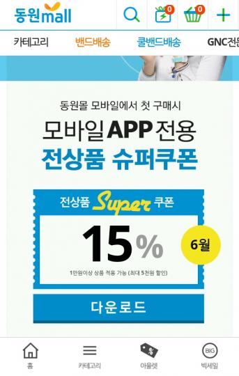 [동원몰] 15%/1만+ 구매시 APP 전용 구매이력 없는 분 > 쿠폰게시판