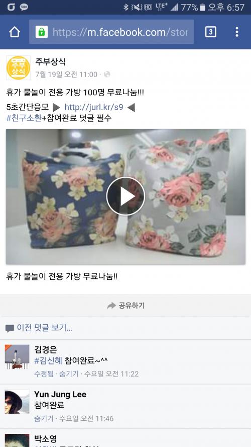 휴가 물놀이 전용 가방 100명 무료나눔!!!