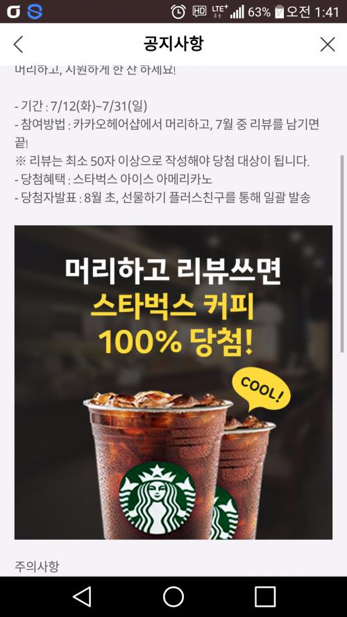 스벅은 커트같은거 해도 주는거 같으니 머리 자르실분하셔도 괜찮을듯. | ||