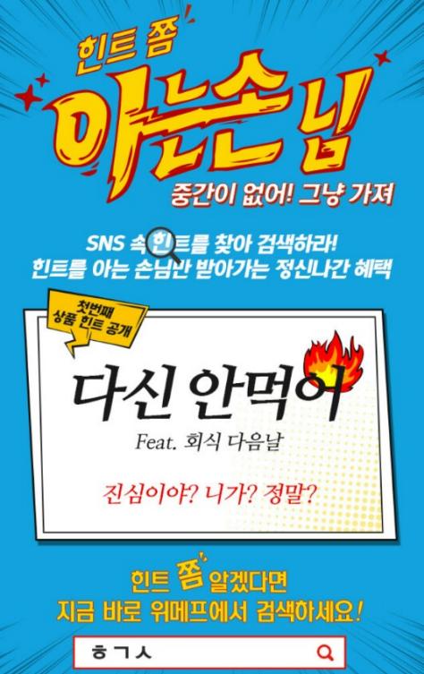 위메프페북에 영상이 떴는데, 그게 힌트였음, 엄청 신선한 영상이예요~ㅋㅋ