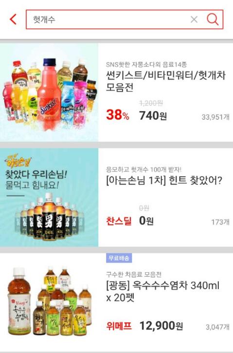 위메프앱으로 들어가서 헛개수 라고 검색하면