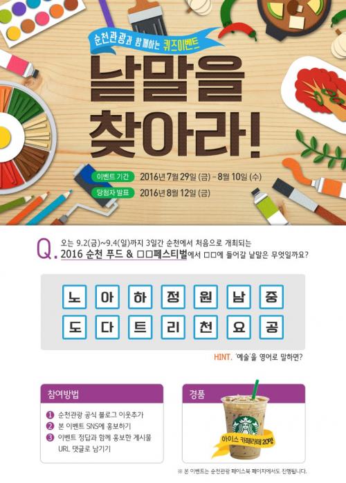[순천관광] 순천관광과 함께하는 특별 퀴즈 이벤트 - 낱말을 찾아라!