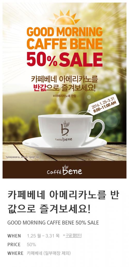 오전 8시부터 11시까지 아메리카노 반값입니다