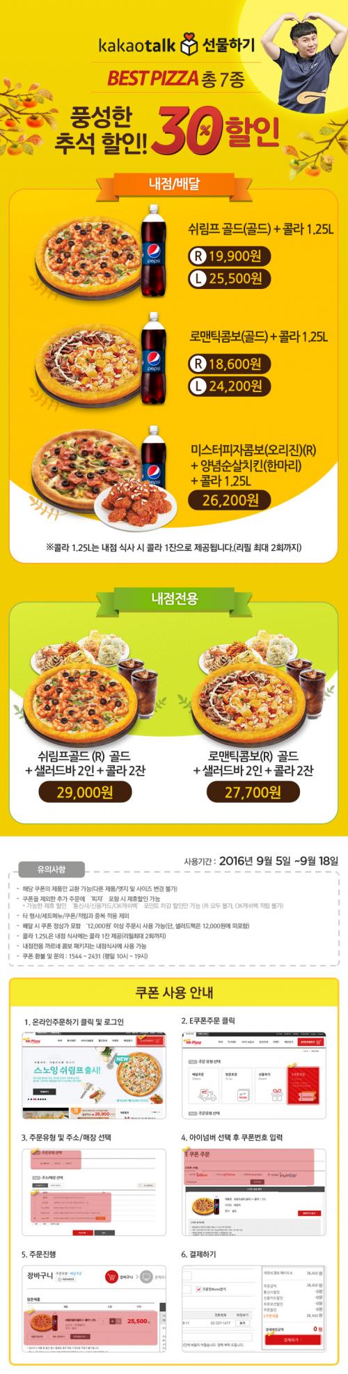 미스터피자 30%할인(일부) 카카오톡 선물하기