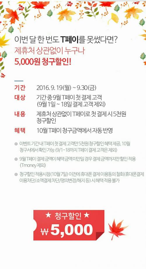 그러고보니 그런거 같네요. T페이라는게 오프라인에서 제휴처에서만 사용가능한거니까요. 일반 쇼핑몰은 그냥 휴대폰결제죠. | ||