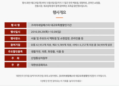 행사 초반 9월 29일 (획부터 10월 9일 (일)까지 1 1 일간 전국 백화점, 대형마트, 온라인 쇼핑몰,