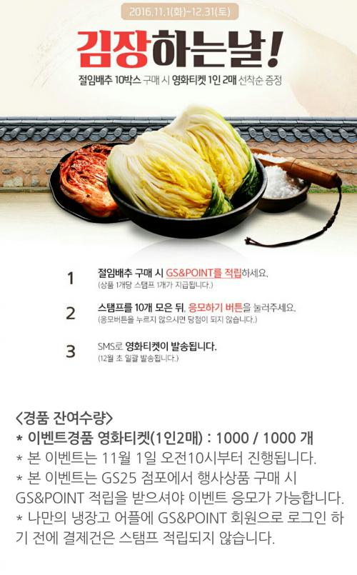 나만의 냉장고 절임배추 10박스 구매시 영화티켓 2매 증정