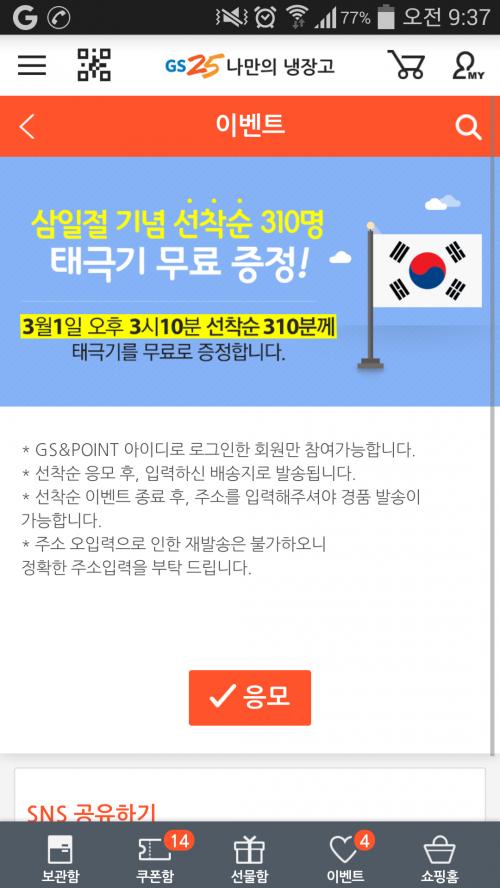 ㅡ.ㅡ 아쉽게도 깜빡하고 15분에 들어갔으나 완료... 받았으면 자전거에 달고 다니는건데 아쉽네요 ㅎㅎㅎㅎㅎㅎㅎㅎㅎ | ||