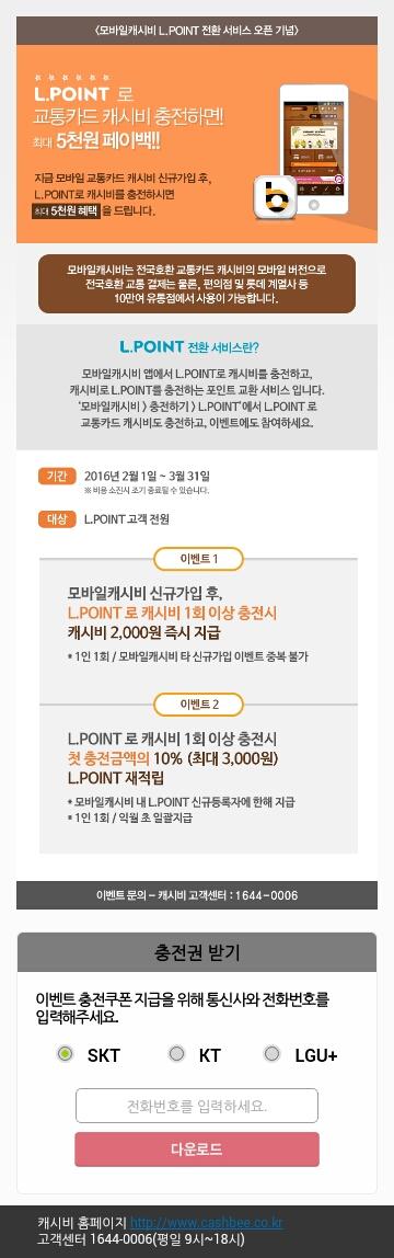[모바일 캐시비 교통카드] 최대 5천 페이백 - 롯데 L.POINT 전환 서비스 오픈 기념