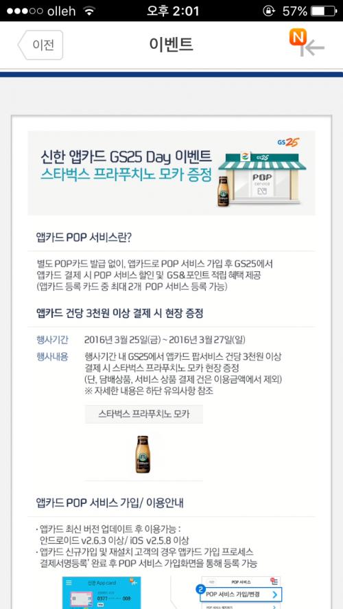 앱카드 팝서비스로 3천원 이상 사용하시면