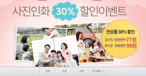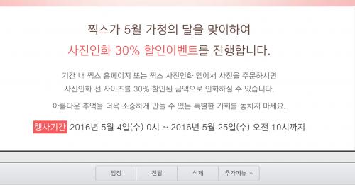 찍스에서 사진인화 30%할인 이벤트가 오늘부터시작합니다(16.05.04~16.05.25오전10시까지)
