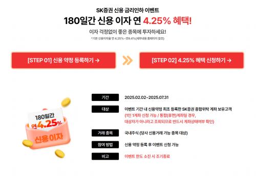 1인 1계좌 신청가능하고 180동안 신용 이자율 연 4.25% 라서 혜택이 괜찮네요