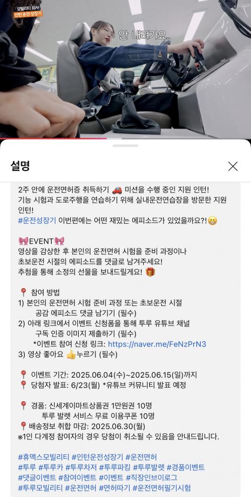 구독하고 영상 감상 후 운전면허 시험 준비 과정이나 초보운전 시절의 에피소드를 댓글로 남기면 끝