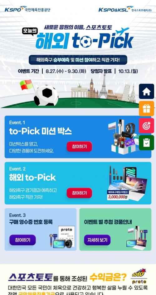 주말에 경기 보다가 우연히 해외 to-Pick이라는 이벤트도 알게 됐습니다.