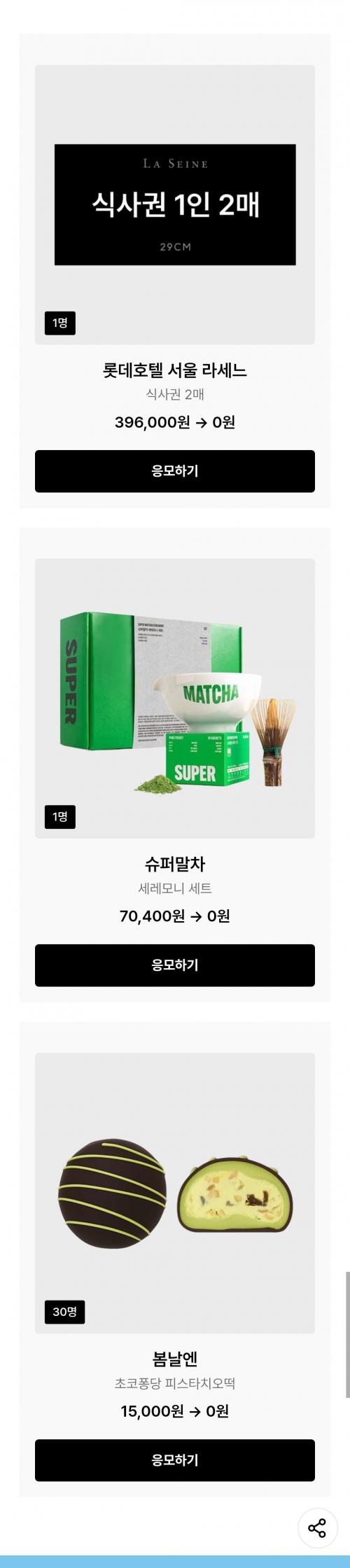 [29CM] 롯데호텔 서울 라세느 식사권 2매, 슈퍼말차 세레모니 세트 0원 래플 이벤트 > 이벤트게시판