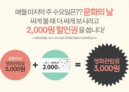 오늘(문화의 날) 17~21시 사이에 시작하는 영화 관람 가능합니다