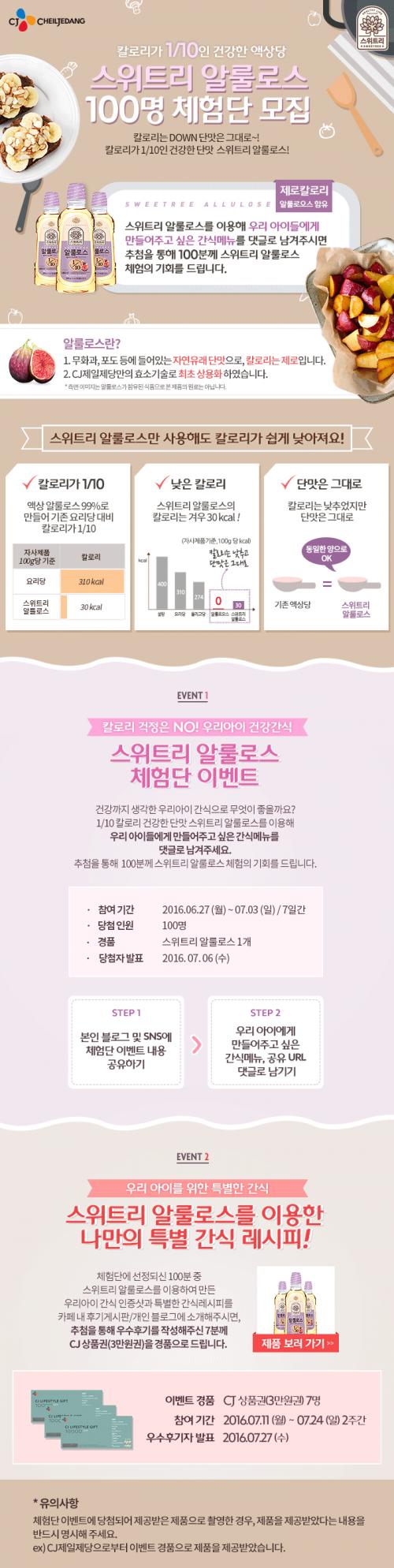 [CJ 제일제당] 칼로리 걱정은 NO! 우리아이 건강간식, 스위트리 알룰로스 체험단 이벤트