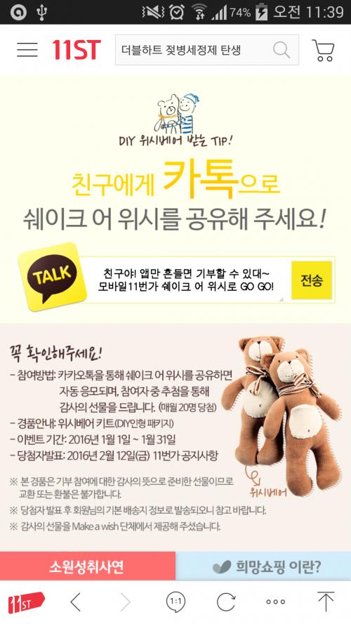 카톡으로 공유하면 곰인형응모도 된다고하네요