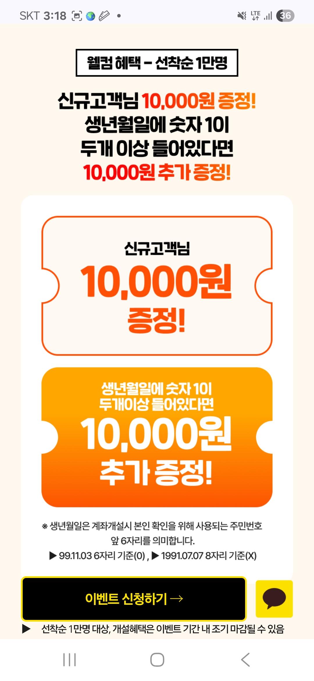 SK증권 신규가입 이벤트로 생년월일에 1 두개 있으면 혜택 2배로 줍니다~