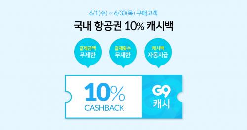 [G9] 항공권 오픈기념 국내선 10% 캐시백, 국제선 할인