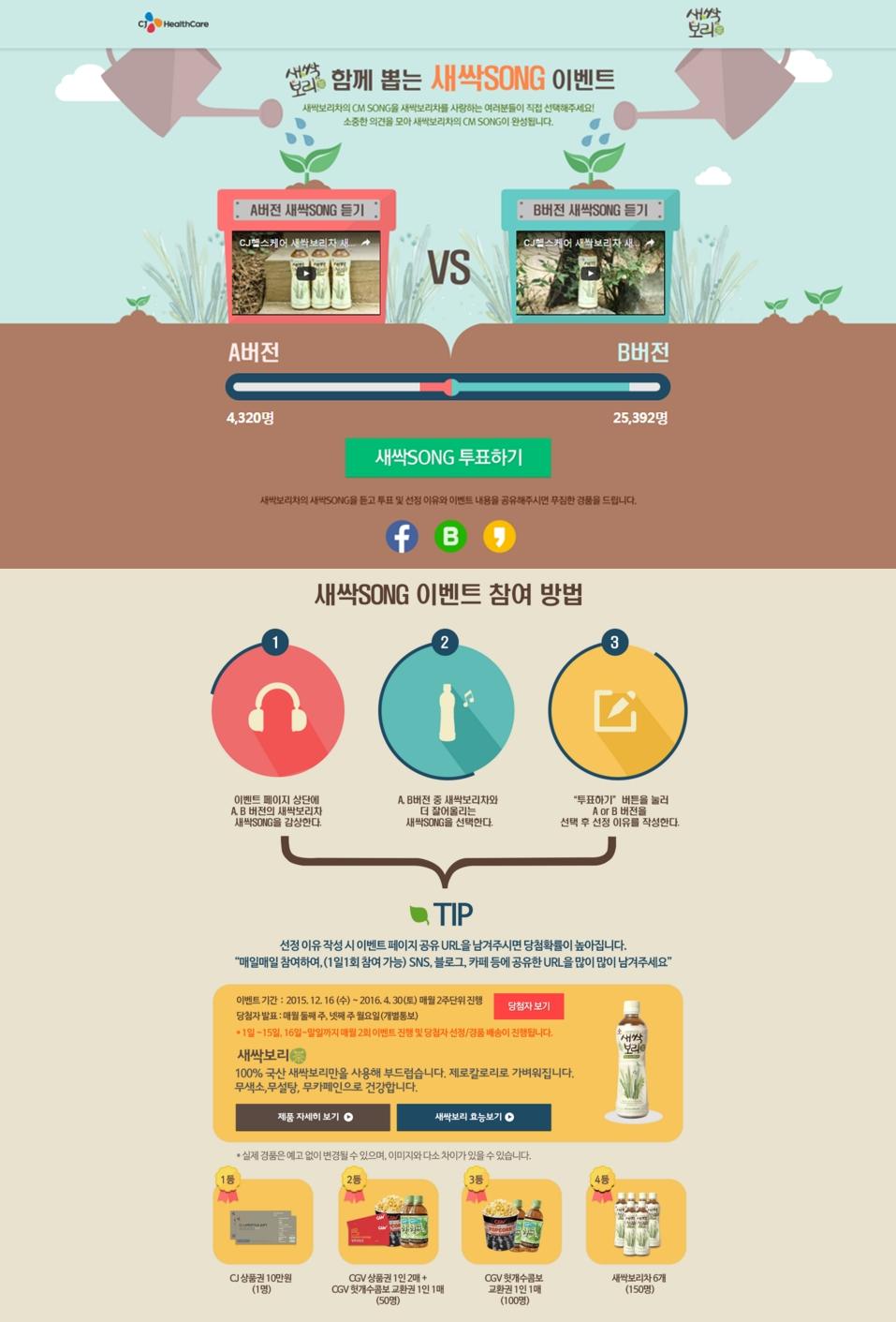 1. 이벤트 페이지 상단에 A,B 버전의 새싹보리차 새싹SONG을 감상한다.