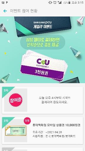 삼성페이 결제시 선착순 경품 CU3000원권