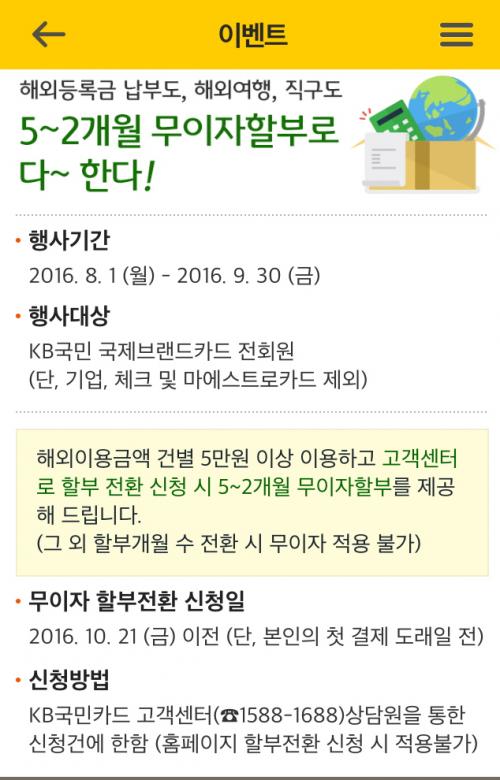 [KB카드] 해외이용 5~2개월 무이자할부 (5만 이상) > 이벤트게시판