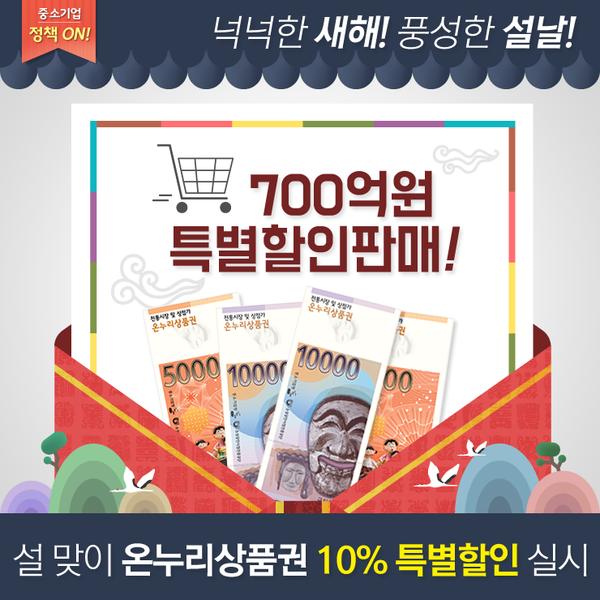 전통시장에서 사용할 수 있는 온누리상품권을 한시적으로 10% 할인판매합니다. (평소엔 5% 할인입니다.)