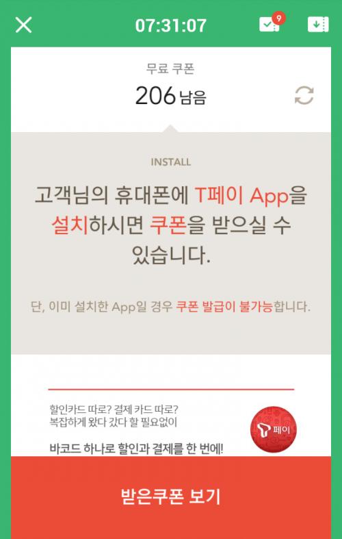 T pay어플 깔고 상품권 수령 후 지우면 됩니다.