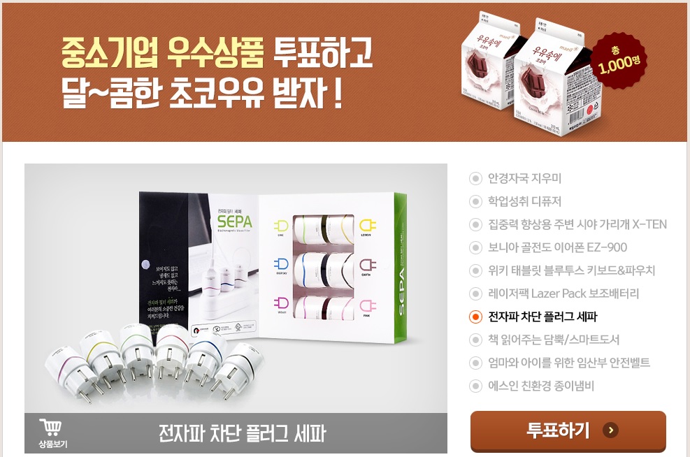 [G마켓] 중소기업 우수상품 투표하고 초코우유 받자 (1,000명) > 이벤트게시판