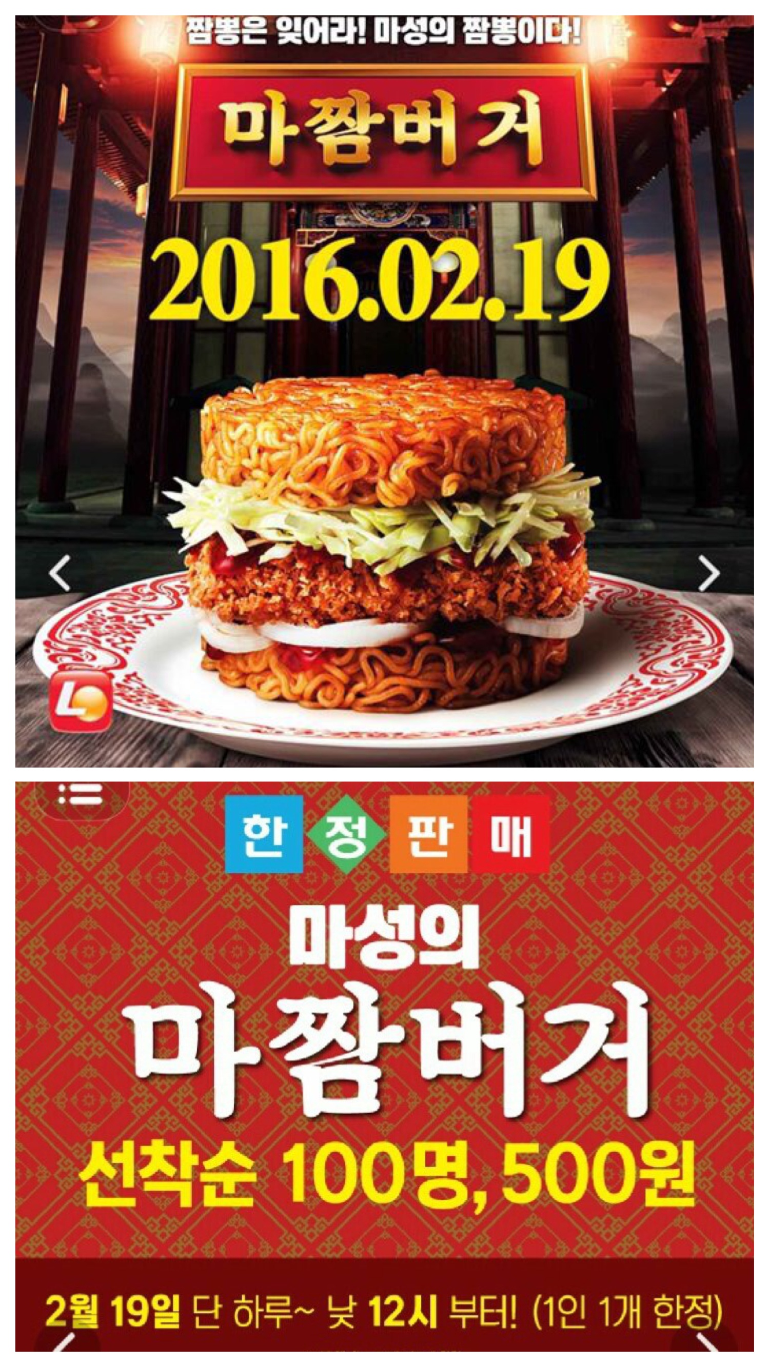2월 19일 낮12시부터 지정된 64개의 매장에서, 선착순 100명에게 롯데리아의 신제품 햄버거 마짬버거를 500원에 판다고하네요 64개 매장 확인해보세요