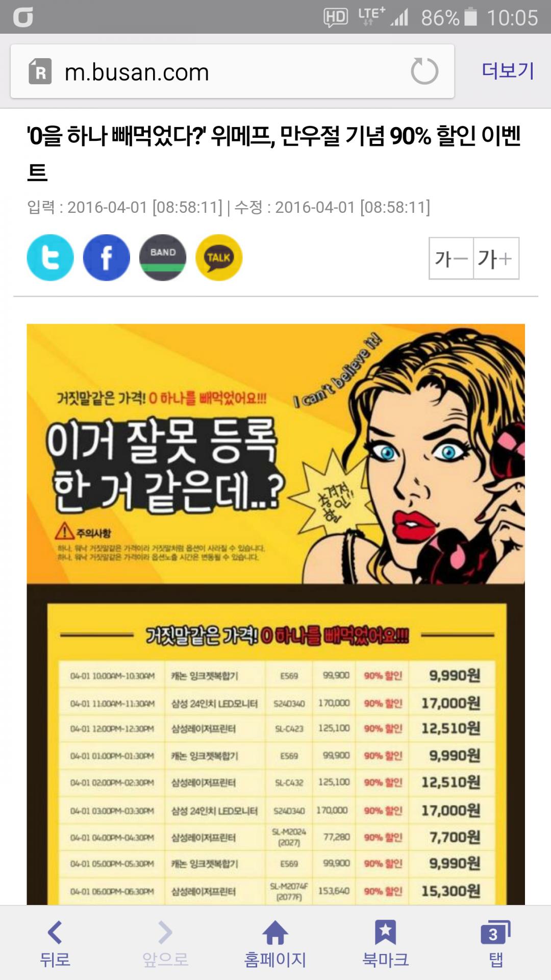 오늘 만우절이라고 위메프 90%이벤트 한다고 하네요ㅋㅋ