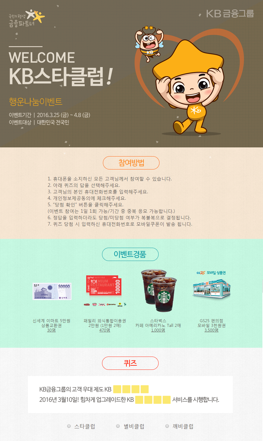 [KB국민은행] KB스타클럽 행운나눔 이벤트 (~4/8)