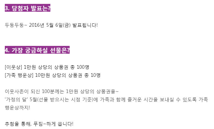 경품 및 당첨자 발표는 아래 캡쳐 참조해 주세요.