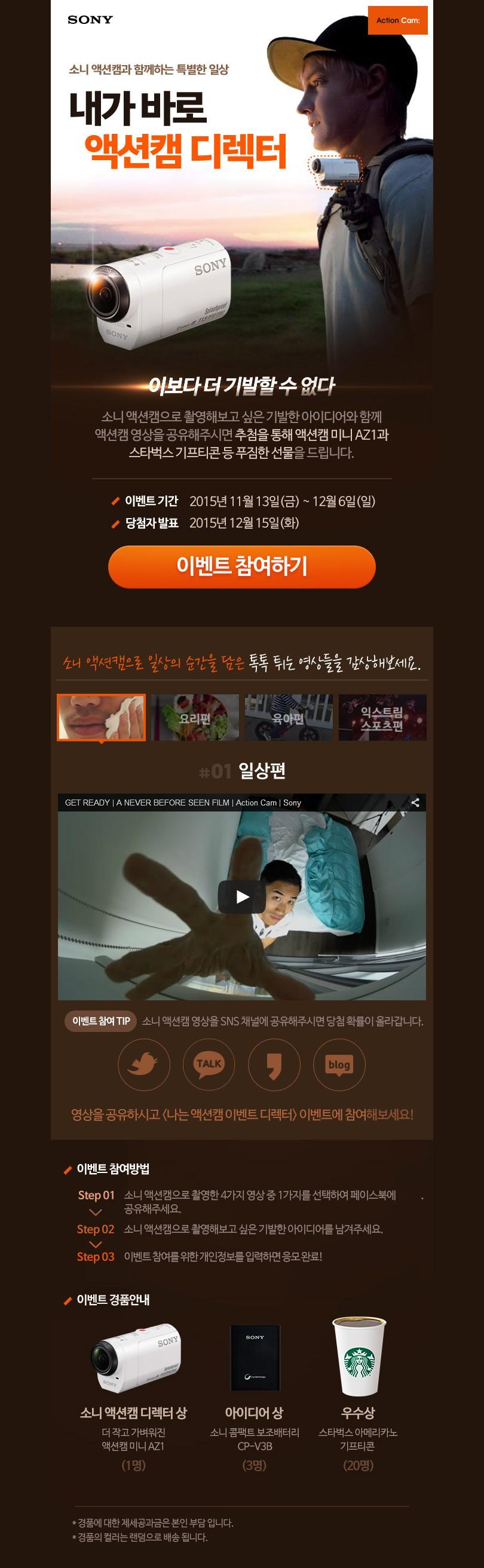 ■ 이벤트 경품 : 소니 액션캠 미니AZ1(1명), 소니 콤팩트 보조배터리CP-V3B(3명), 스타벅스 아메리카노 기프티콘(20명)