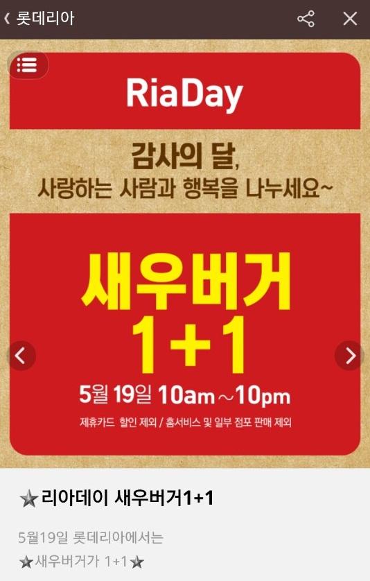 [롯데리아] 리아데이 새우버거 1+1 > 이벤트게시판