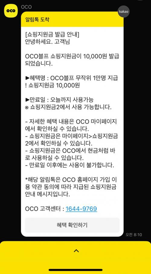 [오씨오] 1만원 쇼핑지원금 지원