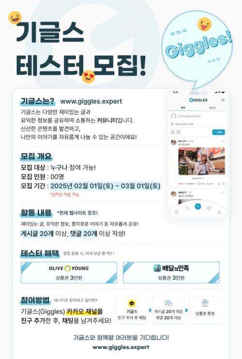 기글스 테스터 모집 (~3/1) > 이벤트게시판
