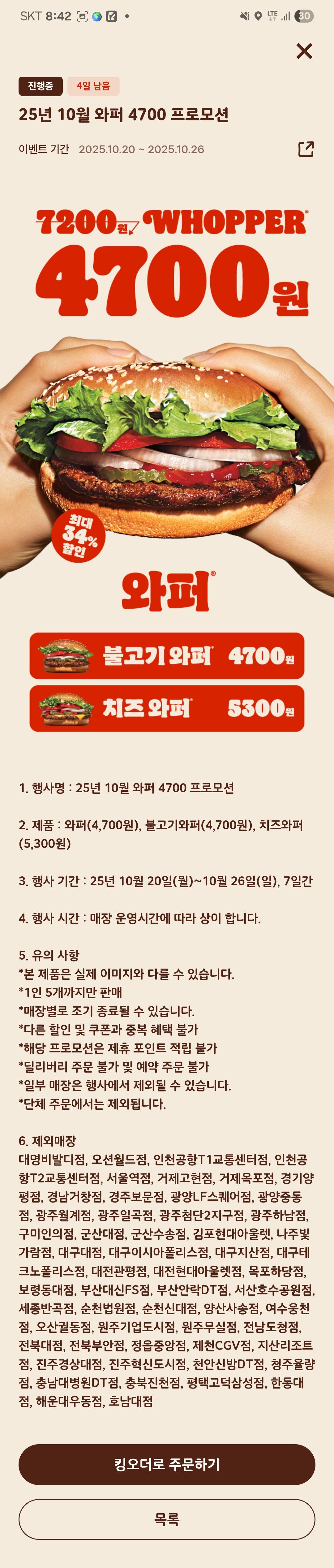 [버거킹] 와퍼할인 4,700원 > 이벤트게시판