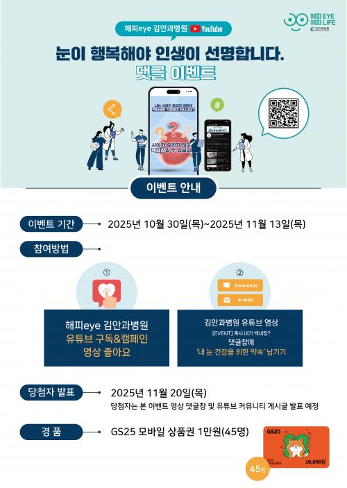 [김안과병원] 해피eye 해피life 캠페인 유튜브 댓글 이벤트_GS25 모바일 1만원권 > 이벤트게시판
