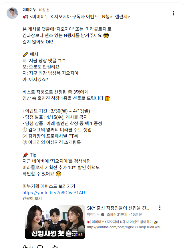 당첨자 3명에게는 경품으로 영상속 출연진 착장 스타일이 경품입니다.