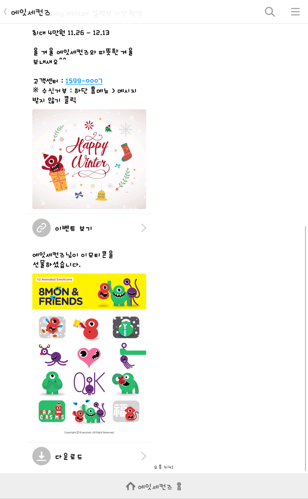 에잇세컨즈 플러스친구 추가하면 들어옵니다^.^