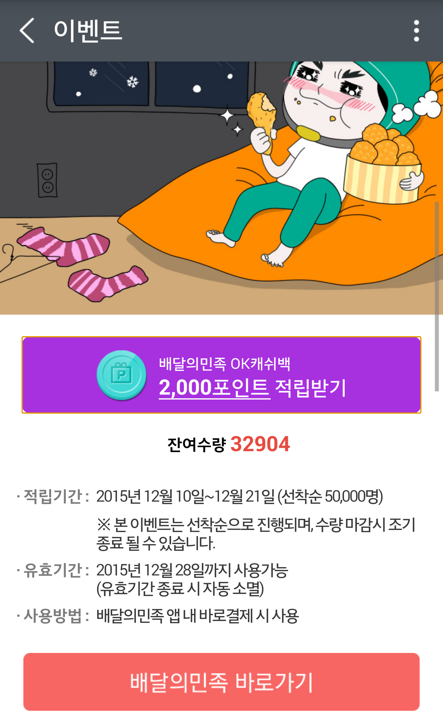 잘 받았습니당 ㅋㅋ 뭐 28일까지니까 그 안에 뭐 시켜먹어야겠군용 ㅋ |