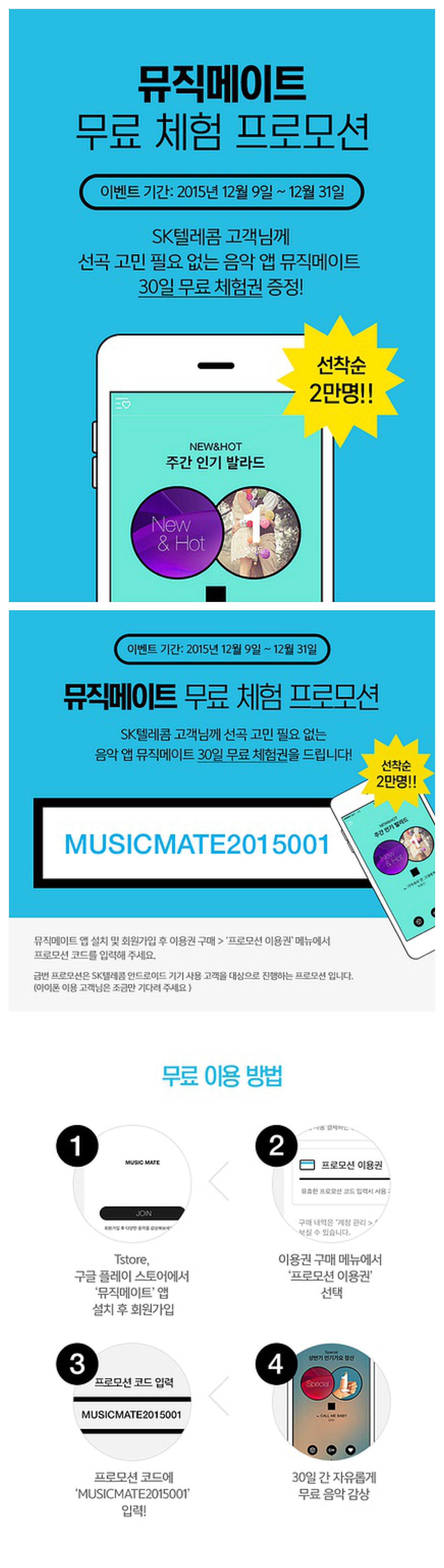 [뮤직메이트] SKT뮤직메이트 30일무료체험 프로모션(9일-31일)