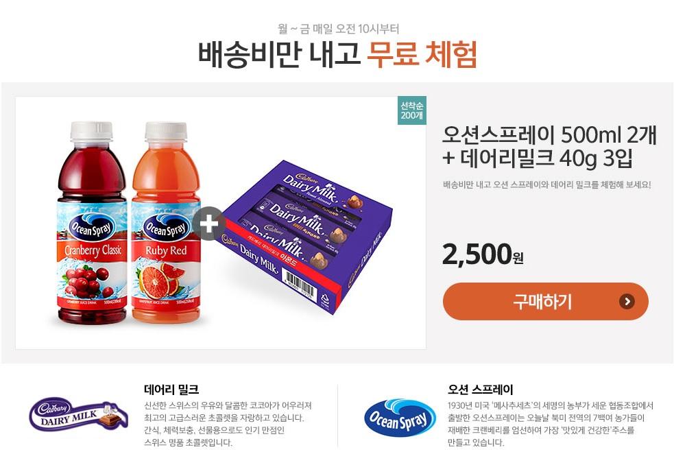 오션스프레이 500ml 2개 + 데어리밀크 3입 (2,500원)