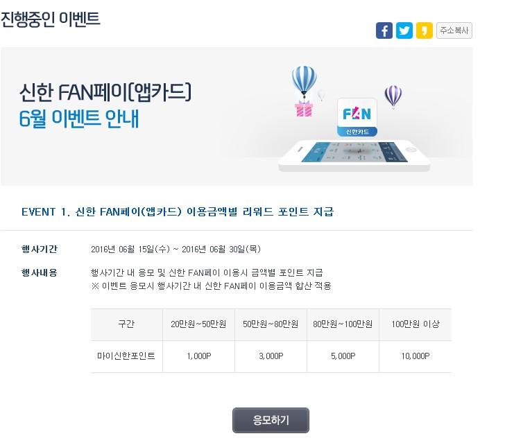 리워드 포인트는 이벤트에 정상응모 된 경우 행사기간(6/15~6/30일) 신한 FAN페이 실적이 합산됩니다.