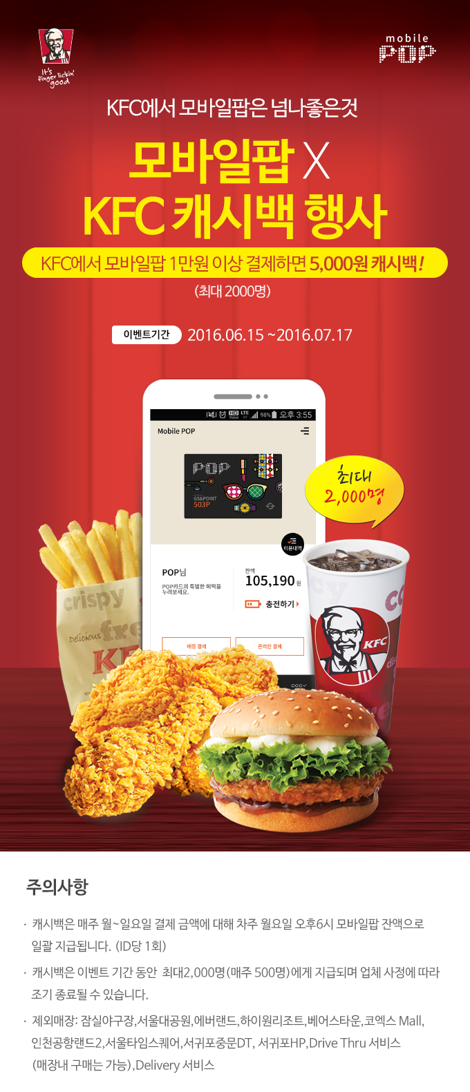 모바일팝으로 KFC 1만원이상 결제시 5천원 캐시백 > 이벤트게시판