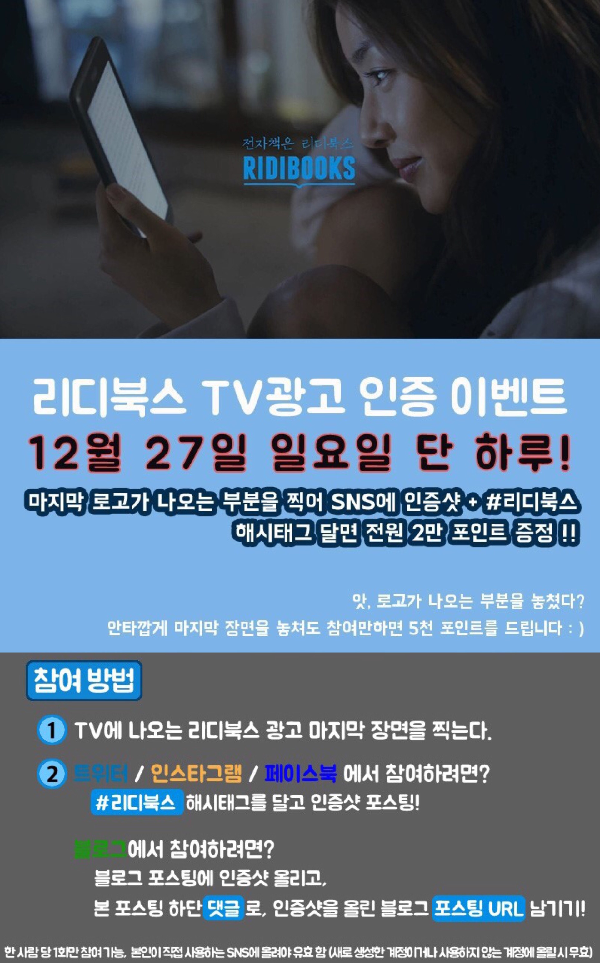 자신의 SNS 계정에 #리디북스 해시태그로 올리면