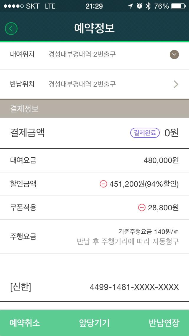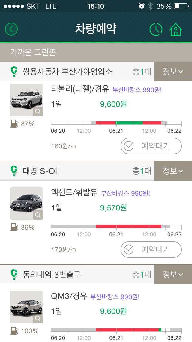 시간당 990원에 파격가로 제공하고 있어요. 1일 안되게 빌리면 9천얼마 나옵니다.