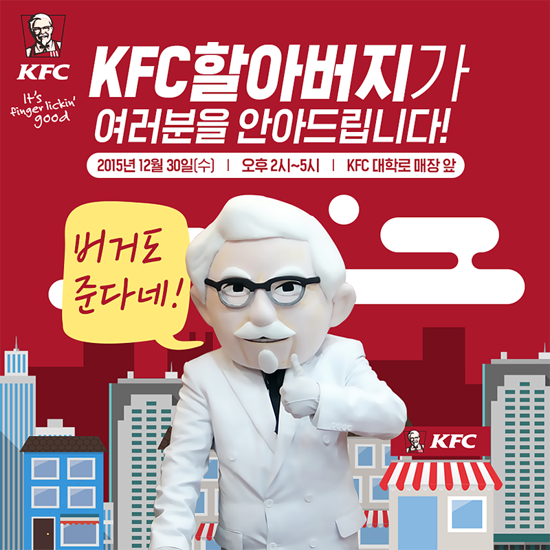 ‘KFC 할아버지가 청춘을 따뜻하게 안아드립니다’